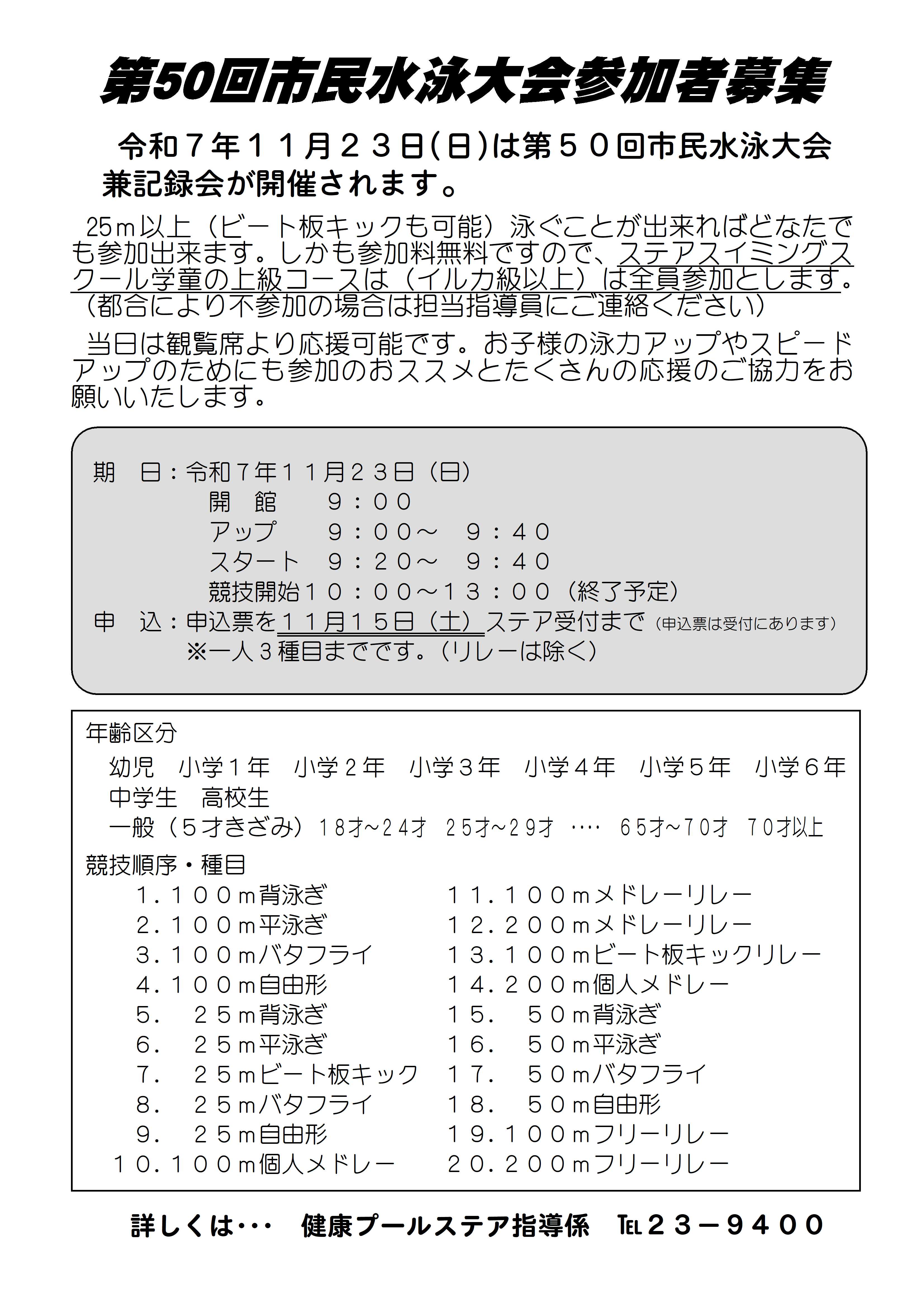 これに伴い、9:00~13:00(予定)は競技プール貸切